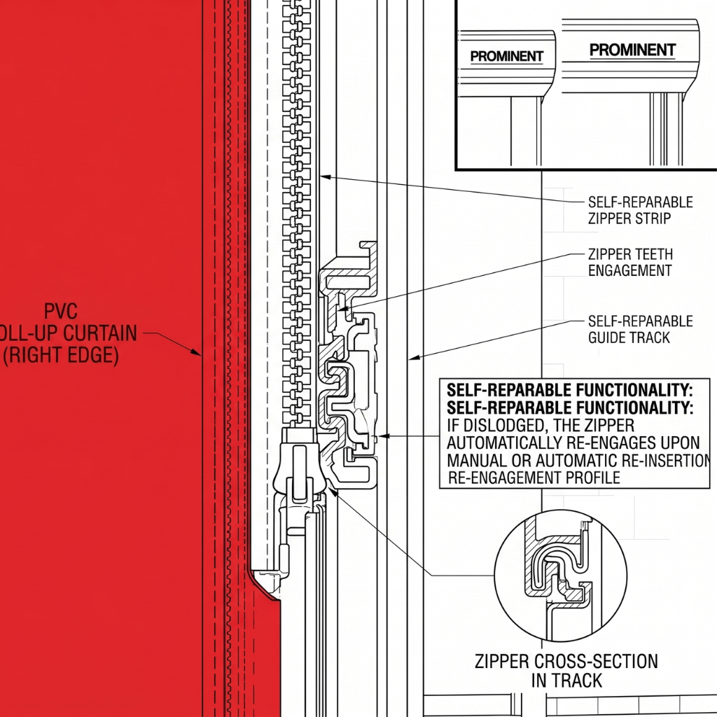 - Self-Repairing: The zipper automatically re-engages into the side tracks if hit or dislodged.